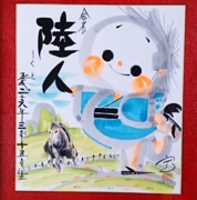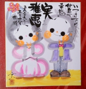 ふるさとの自然を愛する能登在住の画家・三宅寛氏があたたかい心で描いた命名色紙作品-「夢童子」やさしい笑顔の夢童子が「幸多き人生であれ、夢多き未来であれ」と願う心を伝えます。